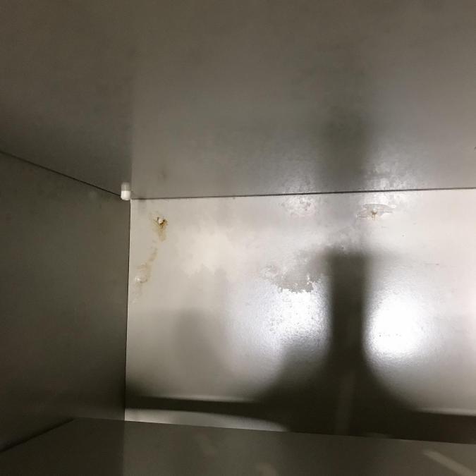 - かなり強い黄ばみ・変色が商品全体にある。(例、天板、正面、背部、サイド部分にある。)