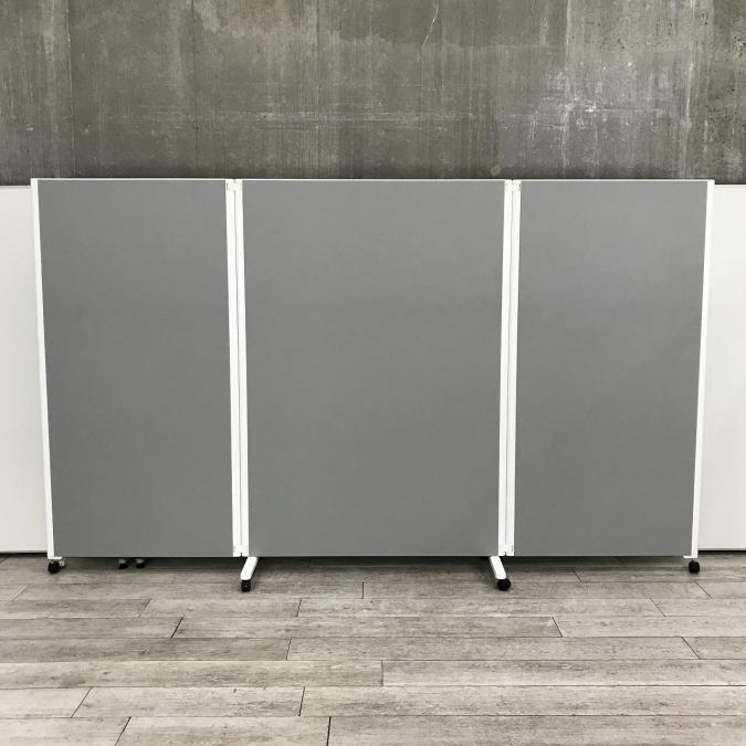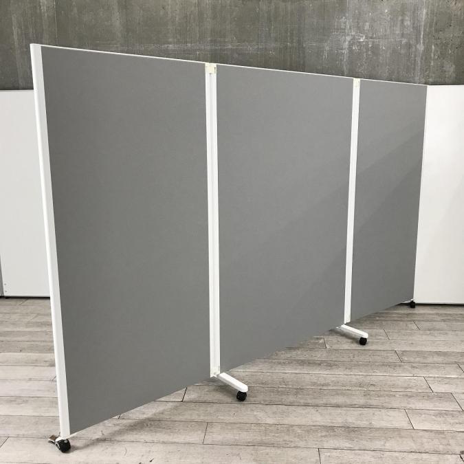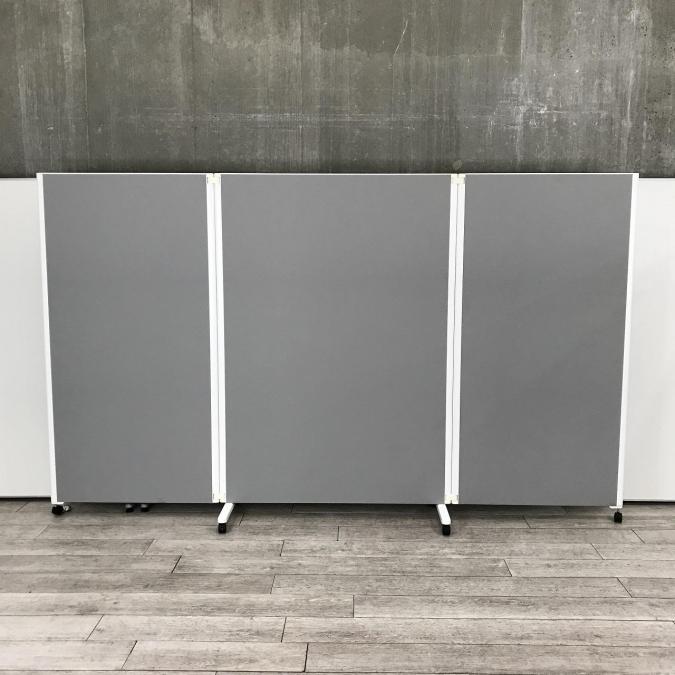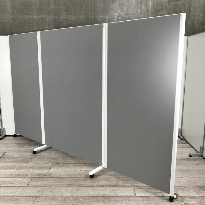 【フレキシブルに使えて便利な逸品!】■コクヨ製 3連パネルスクリーン W3030(900+1230+900)×H1800mm ■スタイリッシュなグレー! 折りたたみパーティション キャスター付- 川崎店