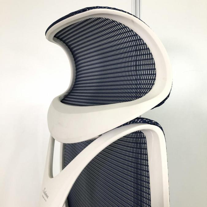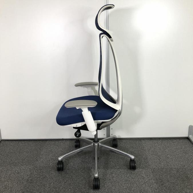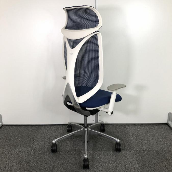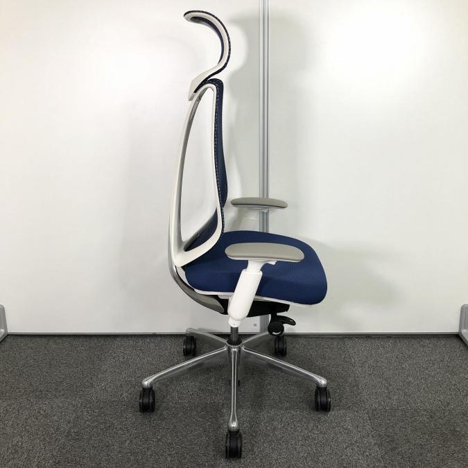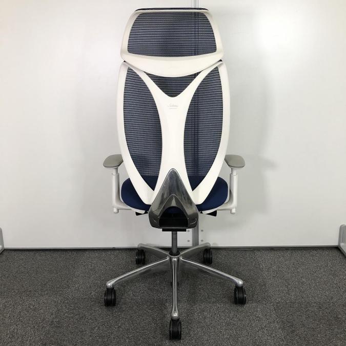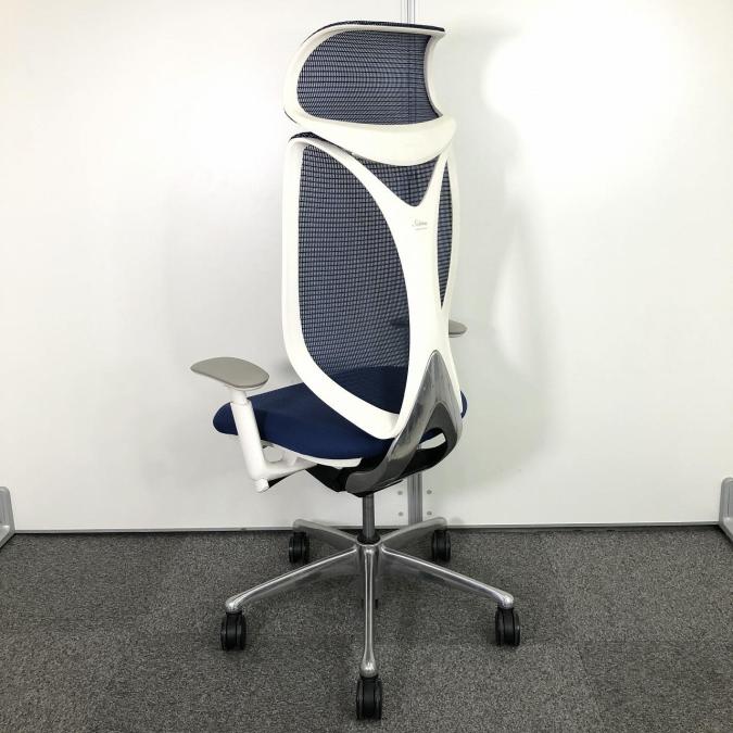 【前傾チルト付!流れるような美しいフォルムの最高級メッシュチェア!】■オカムラ(okamura)製 Sabrina(サブリナ) ハイバック 肘付き ■可動肘 ■背面メッシュ:アクアブルー 座面:ブルー ホワイトフレーム