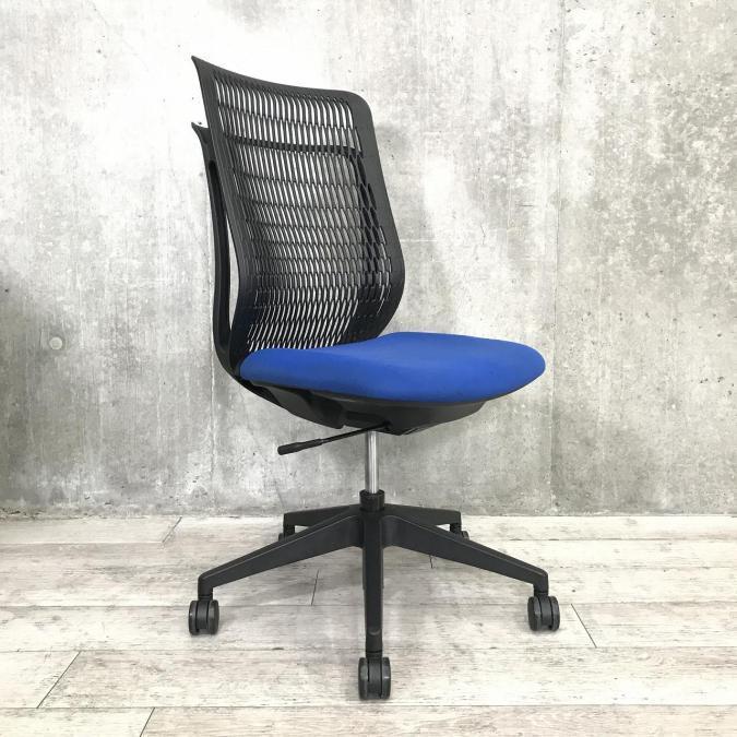 【在庫入替えセール!】背もたれスッキリ!AJチェア※肘無し仕様 色:背ブラック 座ブルー◆内田洋行製(UCHIDA)- 足立・葛飾店
