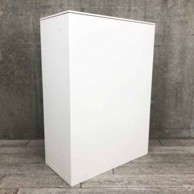 【オフィスの書類をスッキリ整理! 扉の無いタイプなので資料探しがラクラク!】■オカムラ(okamura)製 レクトライン(Rectline)シリーズ オープン書庫 ローキャビネット ■色:ホワイト ※扉外し商品のため外し跡がございます。