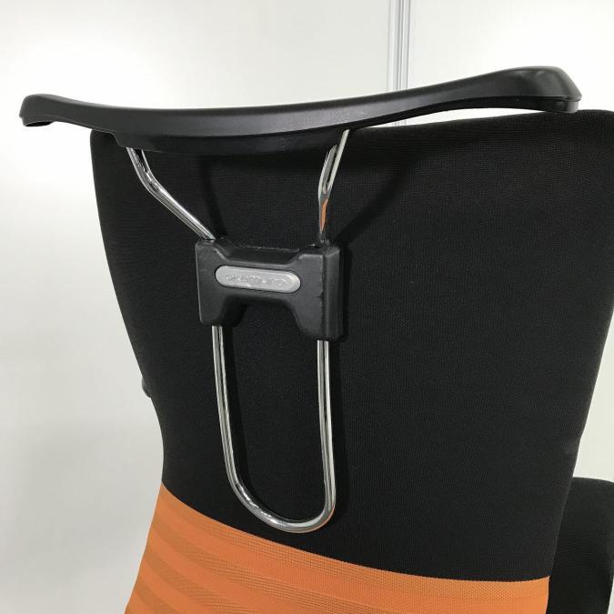 【人間工学に基づいた快適な座り心地!背あてのしなやかな曲線が背中にフィット!】■オカムラ(okamura)製 フィーゴ(feego)チェア 肘付きミドルバック シームレスタイプ ■固定肘/ハンガー付 ■オレンジ×ブラック