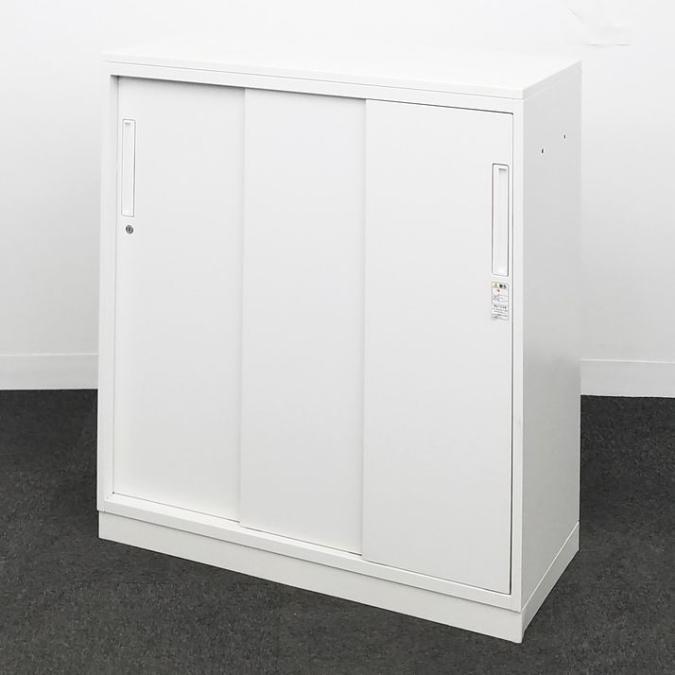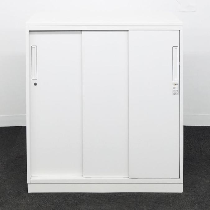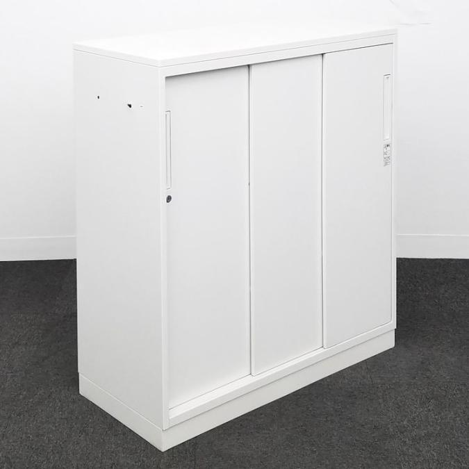 3枚引き戸書庫 コクヨ エディア 鍵付き(シリンダー錠) 天板付き 清潔感のあるホワイトキャビネット 導線を邪魔しないスライド式の扉