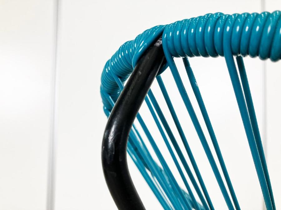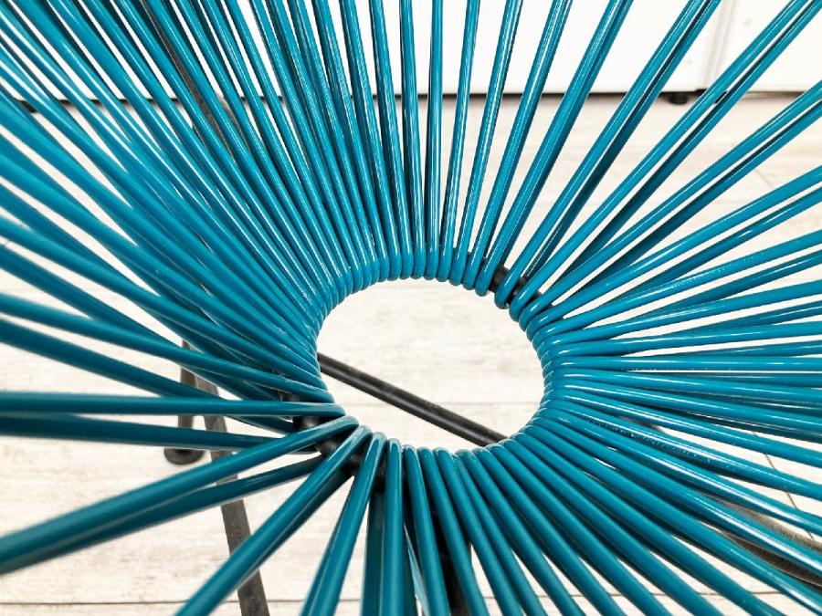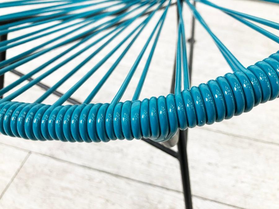 スチールのフレームにPVCコードを巻きつけたシンプルな構造で、メキシコのクラフトマンたちの手でひとつひとつ丁寧に作られています。PVCコードの特性でもある柔軟性によって生まれる、体が包み込まれるような感覚の快適な座り心地の快適なチェアです。