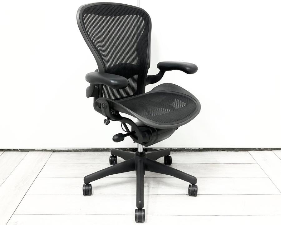 【★状態イマイチのためお安く!】■ハーマンミラー製 アーロンチェア Bサイズ 固定肘 ※キズあり・ランバーサポート無・昇降ガス圧弱めのためお安く!【訳あり特価品】