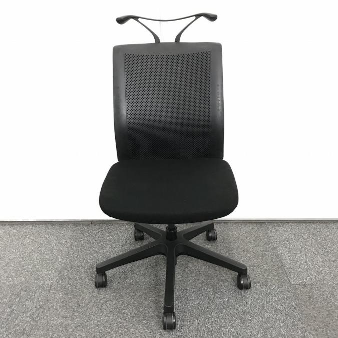 【人気のブラックカラーの肘なしOAチェア!】■オカムラ製 オムネス ●背中を包みこむような座り心地!【AD】