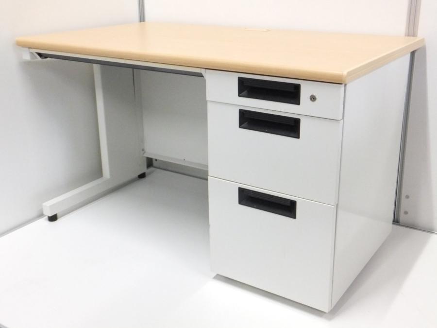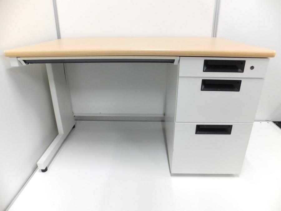 【ワークスペース広々!横幅1400㎜タイプ!】■プラス製 片袖デスク W1400×D700mm 人気のナチュラル木目カラー!- 川崎店