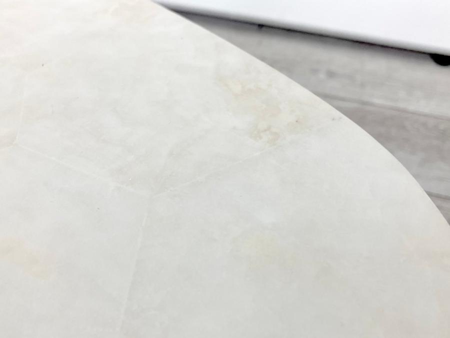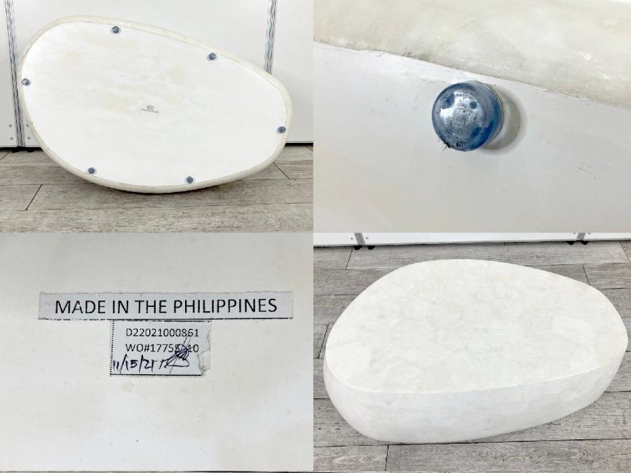 セブ島の天然石をタイルのように貼り付けており、自然の素材をそのままに天板は1点ごとに異なる表情をしております。モダンでエレガントな雰囲気に合うテーブルです。