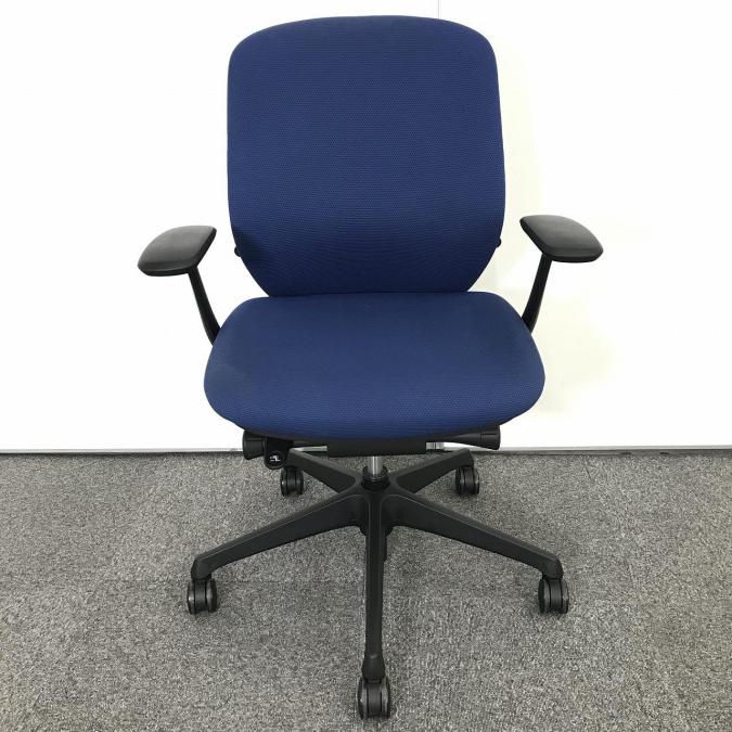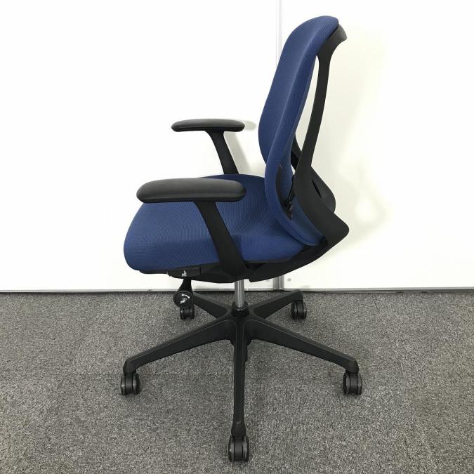 【在庫入替セール品】前傾チルト/人気/定番 オカムラ(okamura))製 シルフィ(Sylphy)肘付ローバックチェア ブルー 固定肘- 千葉店