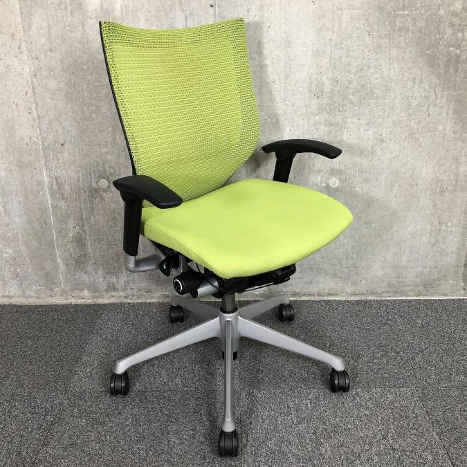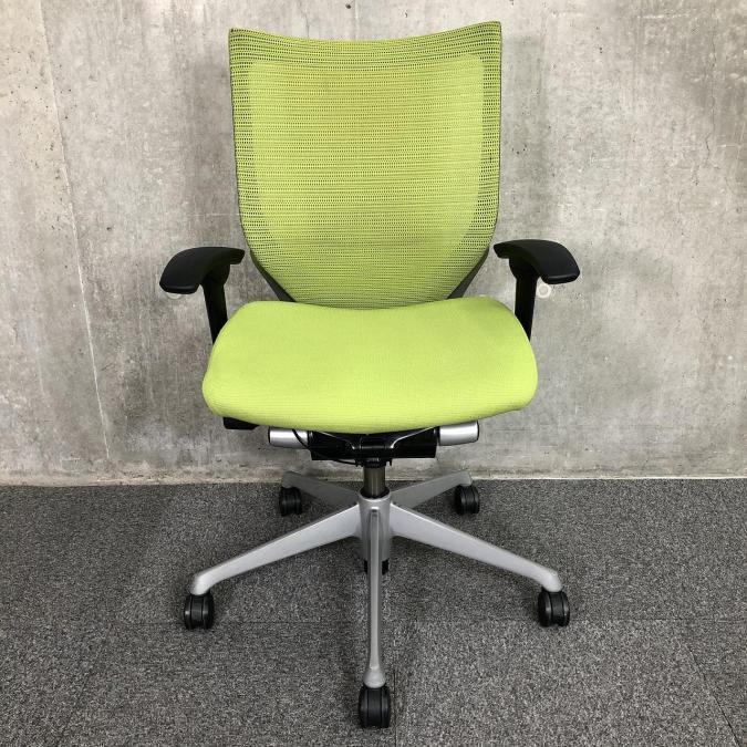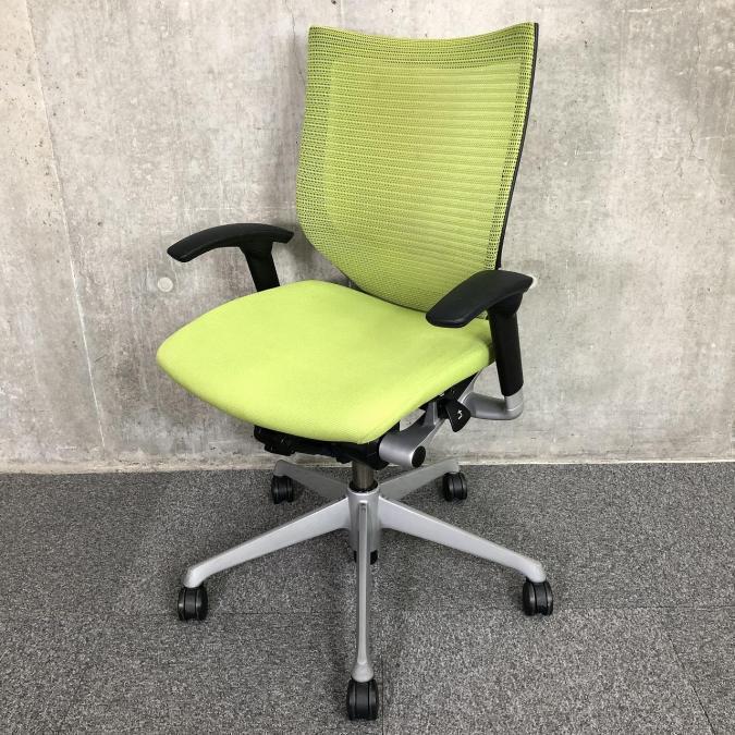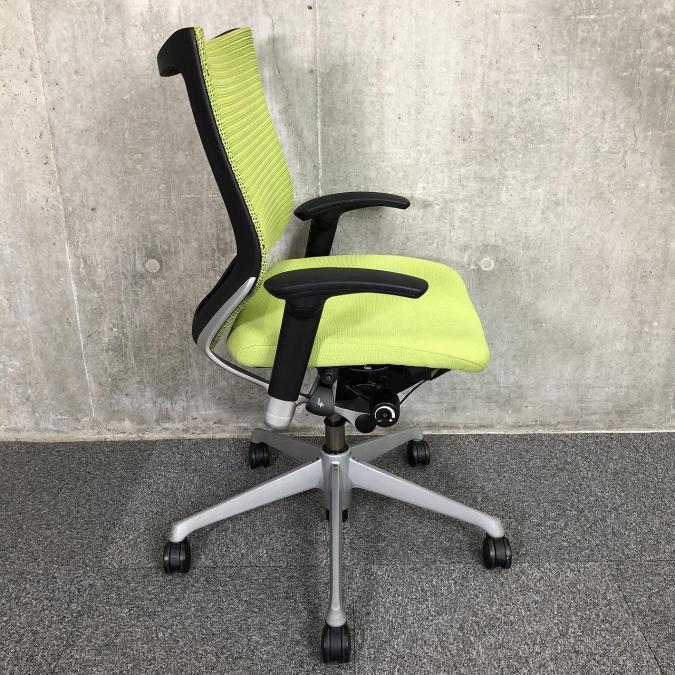 【硬めのメッシュ座面が大人気!国産メッシュチェアの代表格!】■オカムラ(okamura)製 バロン(Baron)チェア ローバック ■可動肘付き ■ライムグリーン【オフィスの執務室、会議室におすすめ!】サーキュラーバリューCO2削減量の算出について