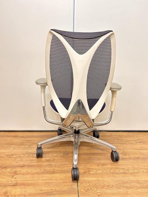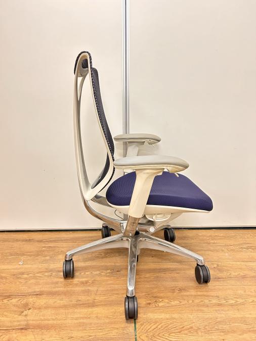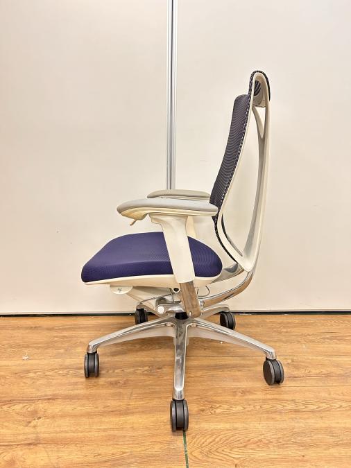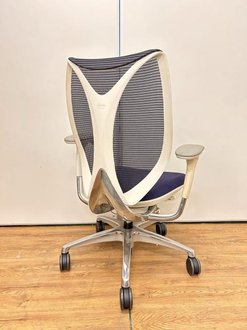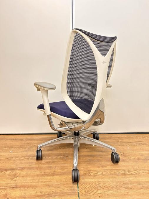 【前傾チルト付!流れるような美しいフォルムの最高級メッシュチェア!】■オカムラ(okamura)製 Sabrina(サブリナ) ハイバック 肘付き ■可動肘 ■背面メッシュ:アクアブルー 座面:ブルー ホワイトフレーム