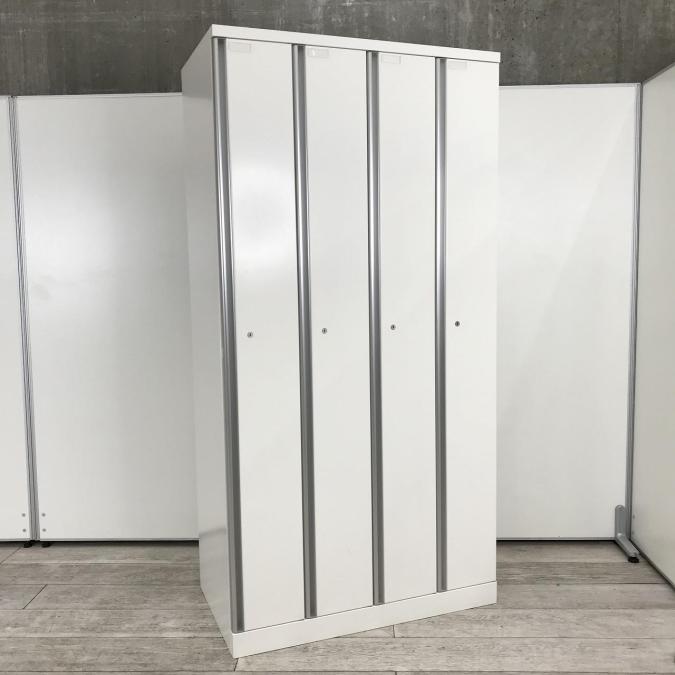 【上質でスタイリッシュなデザイン!】■オカムラ製 4人用ロッカー ホワイト ■シルバーの取っ手はどこからでも開閉操作可能で使いやすい!- 川崎店