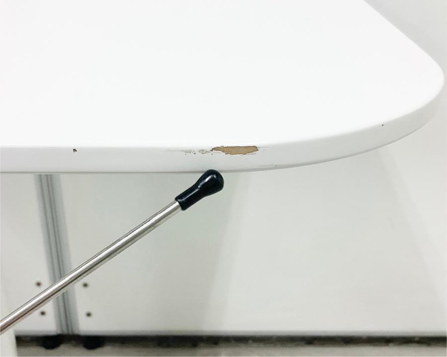 - あり黄ばみ・変色が広い範囲にうっすらある、または濃い黄ばみ・変色が一部ある。(例、天板、幕板、棚板、サイド部分、脚部等にある。)