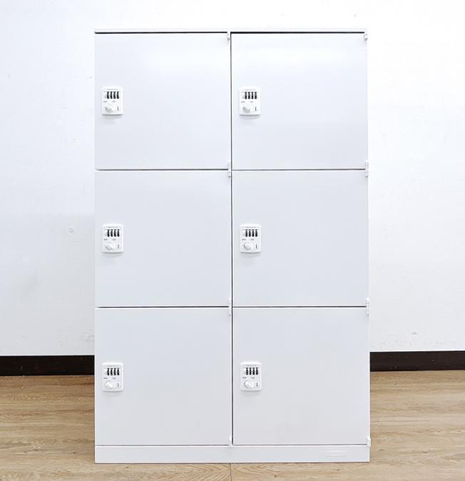【博】オカムラの6人用パーソナルロッカー【レクトライン/ホワイト色※ダイヤル錠】 ※【博多店在庫品※在庫確認必要:南店でもご案内が可能です】