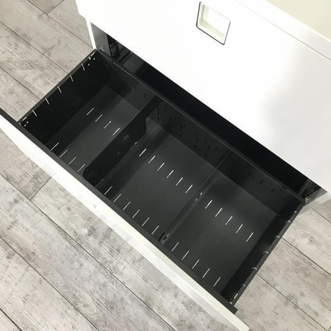 【使いやすさで選ぶならコレ!大容量の三段キャビネット】■オカムラ(Okamura)製 レクトラインシリーズ(Rectline) 3段ラテラル書庫 ローキャビネット ■天板付き ■シリンダー錠 ■ホワイト