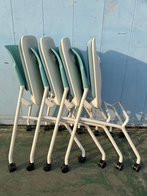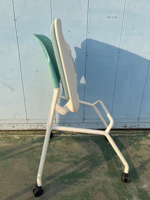 【使わない時はコンパクトに収納!】セージ×ホワイトが鮮やかなネスティングチェア!【在庫入替セール品!】 ■オカムラ/ルナ/セージ