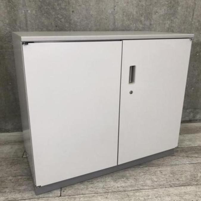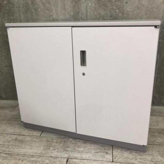 【書類の収納スペースを増やしたい方に!収納力抜群な観音開きタイプのキャビネット】■イトーキ(ITOKI)製 シンライン(THIN LINE)シリーズ 両開き書庫 ローキャビネット H1100㎜ ■グレー ■シリンダー錠