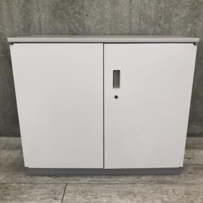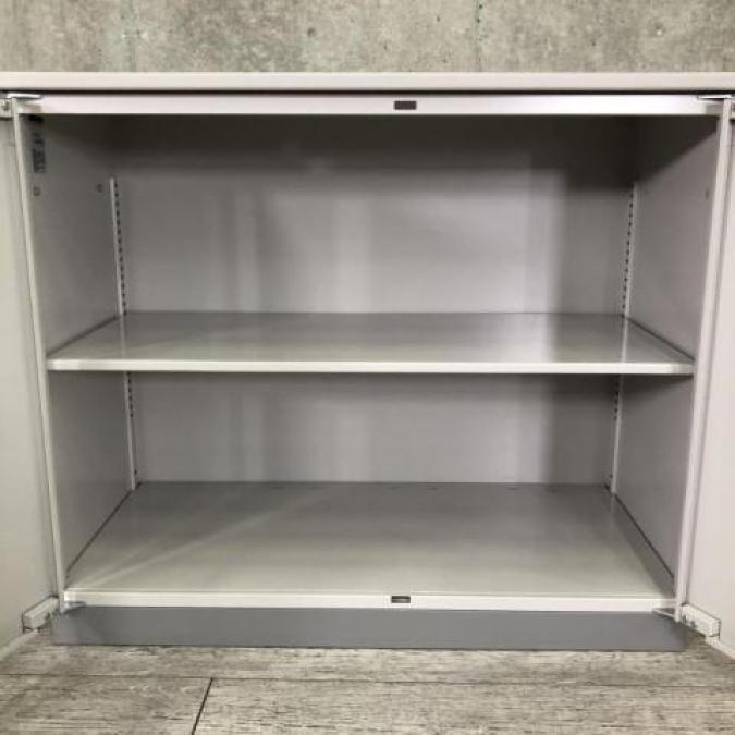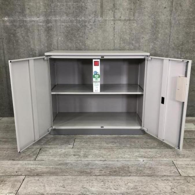 【書類の収納スペースを増やしたい方に!収納力抜群な観音開きタイプのキャビネット】■イトーキ(ITOKI)製 シンライン(THIN LINE)シリーズ 両開き書庫 ローキャビネット ■グレー ■シリンダー錠