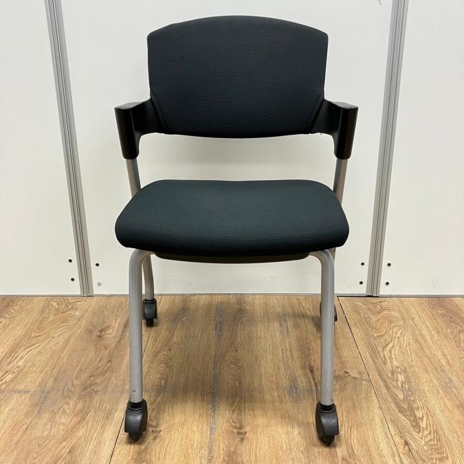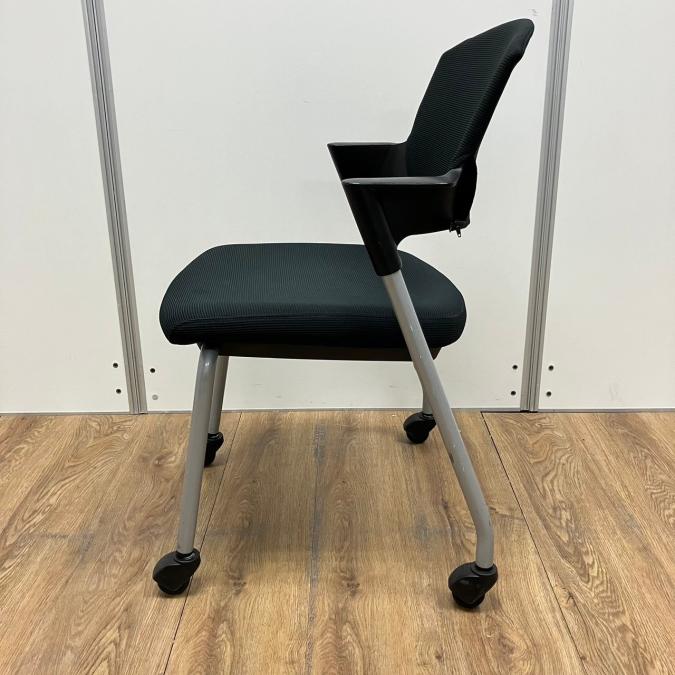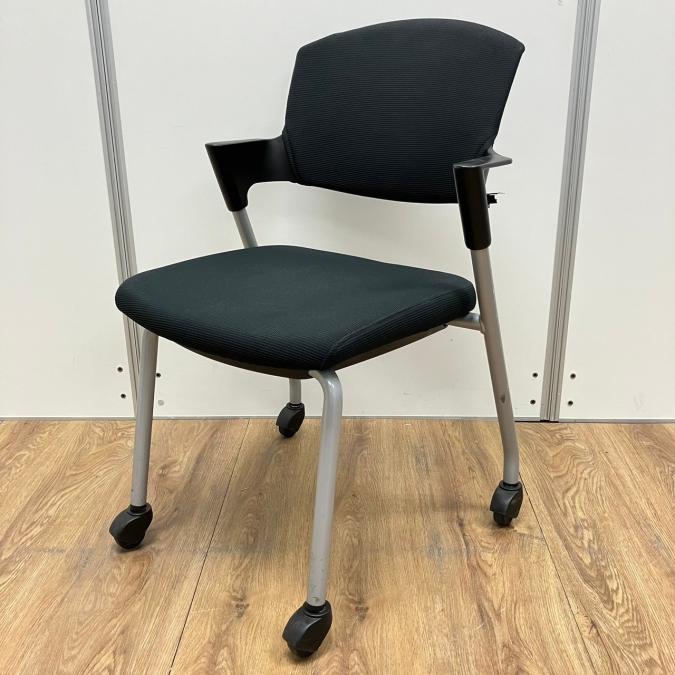 【6/16・8脚入荷予定!】【シンプルスマートなスタッキングチェア!分厚いクッションで長時間でも快適な座り心地!】■コクヨ製 プロッティ スタッキングチェア 肘付ミーティングチェア ■固定肘 ■キャスター付 ■ブラック ■背面樹脂 オフィスバスターズ梅田本店