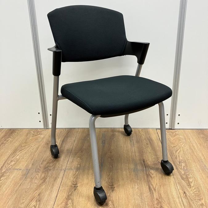 【商品入替のため、残り2脚限り】コクヨ製 定番プロッティシリーズ 人気のブラックカラー 背面クロスタイプ 注意※ゴムキャスタータイプ スタッキングチェア!!- 京都東寺店