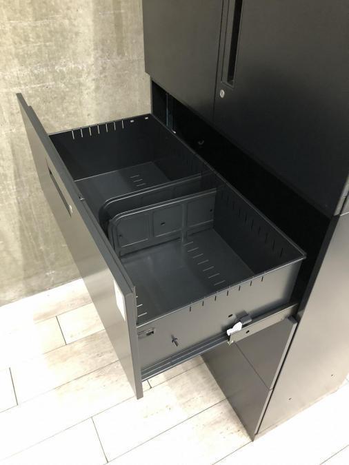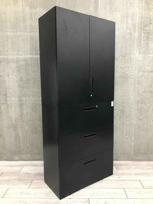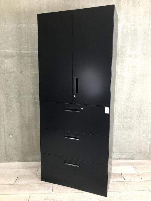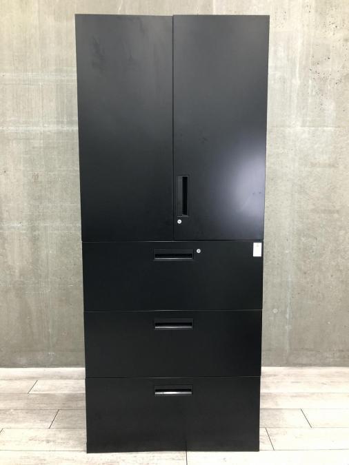 【在庫入替セール品】【スタイリッシュな空間を演出!】【入荷の珍しいブラック書庫がセットで入荷!】■コクヨ製 エディアシリーズ 上下書庫セット(両開き+3段ラテラル)ブラック 【オフィス書類をスッキリ整理!】- なんば日本橋店