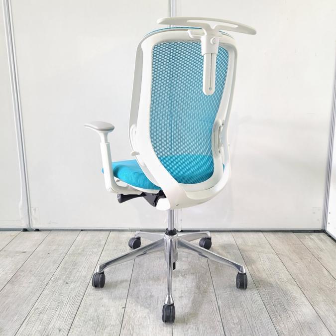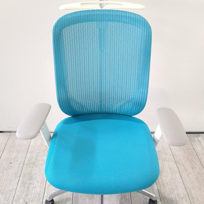 《現物写真だから安心!》オカムラ製の人気オフィスチェア【シルフィーメッシュ/可動肘/ヘッドレスト付き/ブルーグリーン】が先着1名様ご案内可能です!