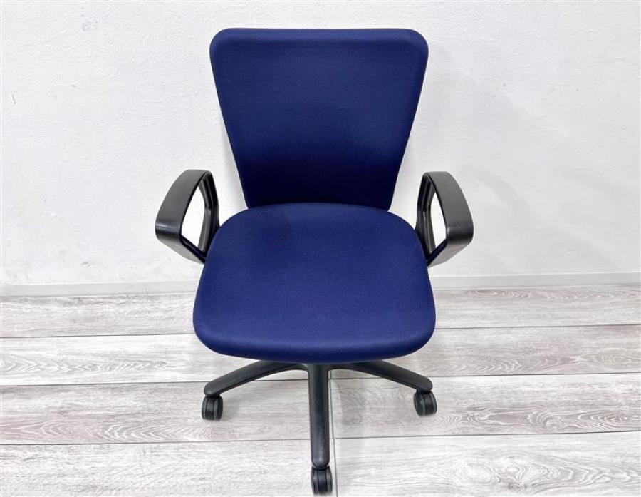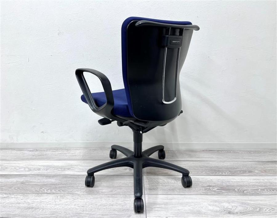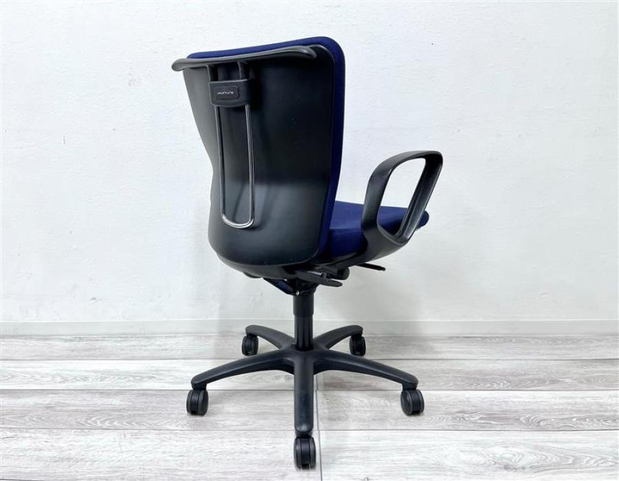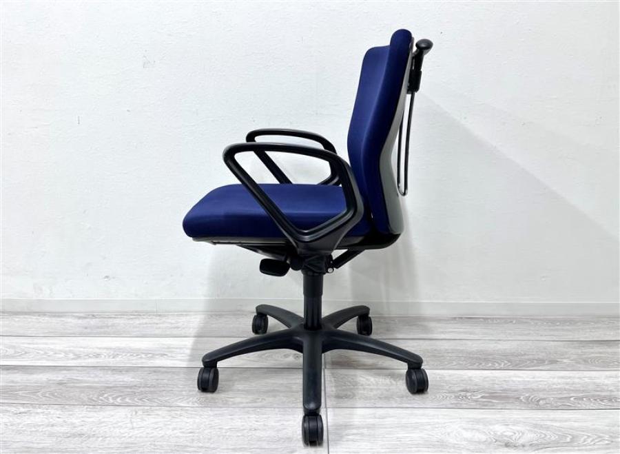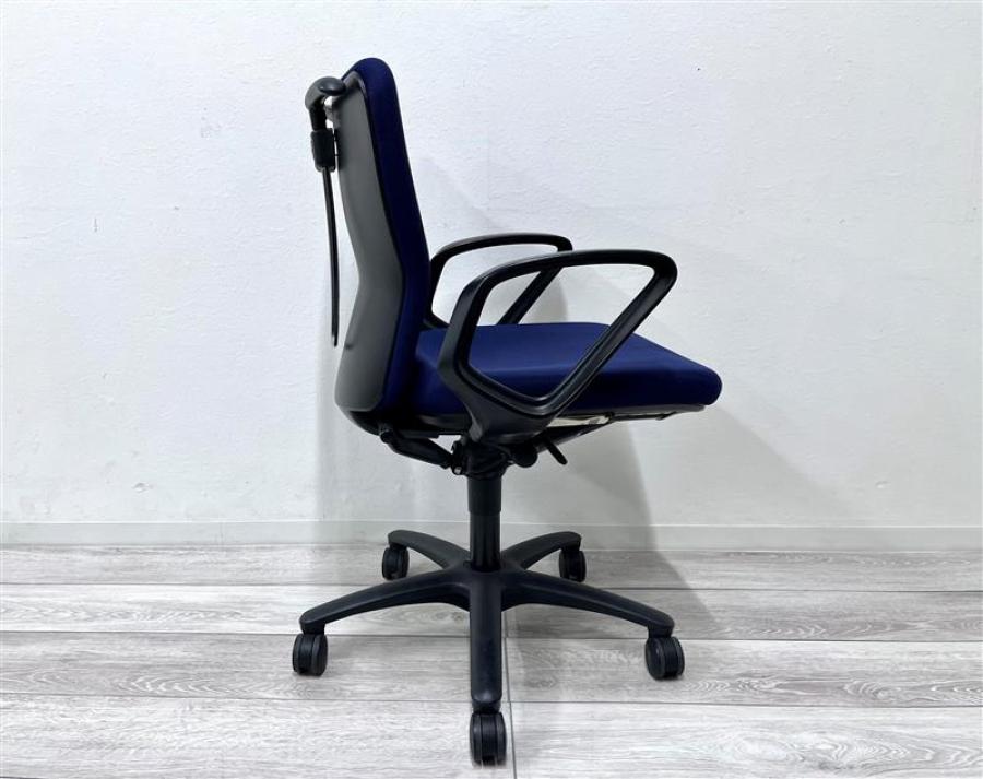 オカムラ カロッツァ 可動肘付きチェア ローバックモデル ダークブルー×ブラックフレーム ※使用感強め・一部の部材欠けのため特価
