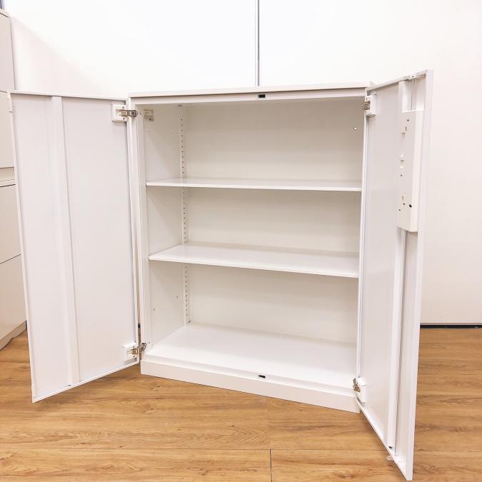 コクヨ製 エディアシリーズ ホワイト シリンダー 施錠 収納物がひとめで分かる両開き戸タイプ! ローキャビネット 両開き書庫!!外部倉庫在庫