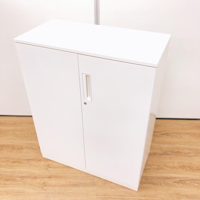 【収納物がひとめで分かる両開き戸タイプ!】■コクヨ(KOKUYO)製 エディア(EDIA)シリーズ 両開き書庫 ローキャビネット H1130㎜ ■天板・ベース付 ■ホワイト ■シリンダー錠