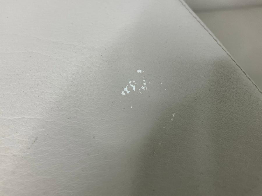 - あり黄ばみ・変色が広い範囲にうっすらある、または濃い黄ばみ・変色が一部ある。(例、座面・背もたれ、脚部等にある。)