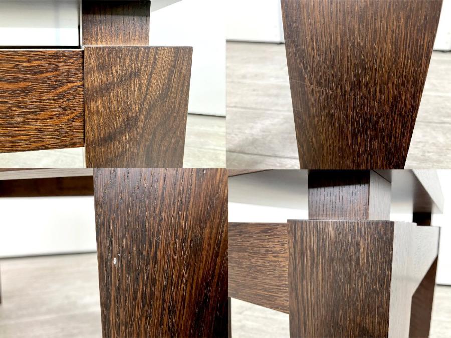 - 目立つ箇所複数あり深い傷・凹みが商品全体にある。(例、天板、幕板、棚板、サイド部分、脚部等にある。)