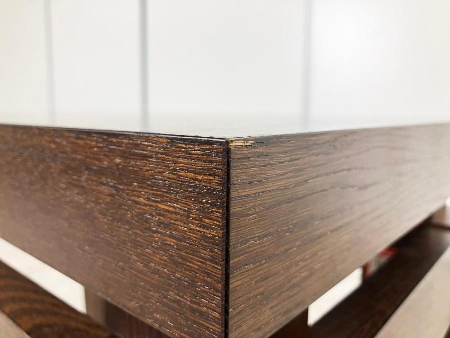 - 目立つ箇所あり傷・凹みが多数、深い傷・凹みが一部ある。(例、天板、幕板、棚板、サイド部分、脚部等にある。)