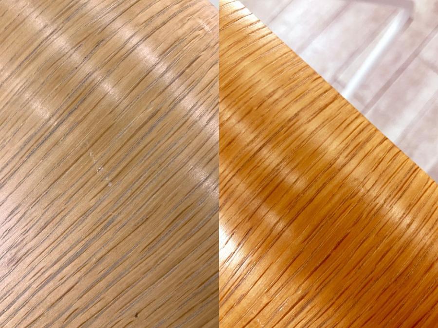 - あり黄ばみ・変色が広い範囲にうっすらある、または濃い黄ばみ・変色が一部ある。(例、天板、幕板、棚板、サイド部分、脚部等にある。)