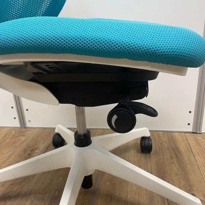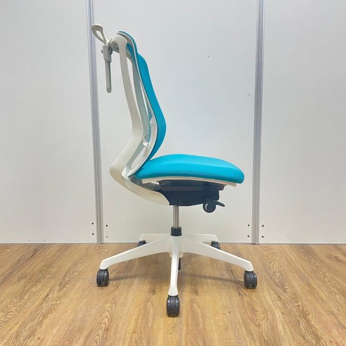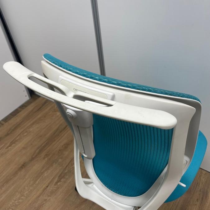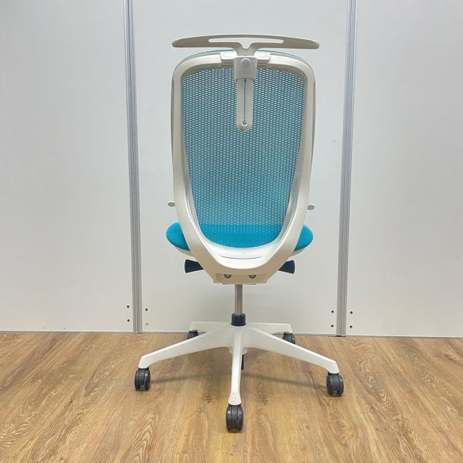 【商品入替のため、残り1脚限り】オカムラ製 シルフィーシリーズ ブルーグリーン 樹脂脚 コートハンガー付き 前傾姿勢対応! 自宅用にもオススメ!! 肘無しハイバックチェア!!- 京都東寺店