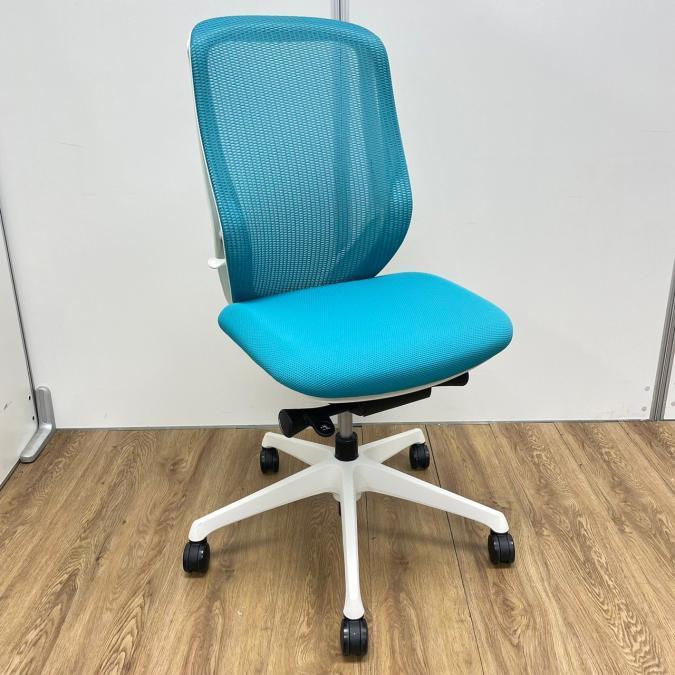 三次元曲面が身体にフィット!前傾チルト機能付き大人気メッシュチェア! ■オカムラ/シルフィーチェア(Sylphy)/ブルーグリーン×ホワイトシェル 肘付ハイバック ■背面メッシュ ■肘無し