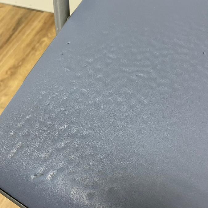 - あり黄ばみ・変色が広い範囲にうっすらある、または濃い黄ばみ・変色が一部ある。(例、座面・背もたれ、脚部等にある。)