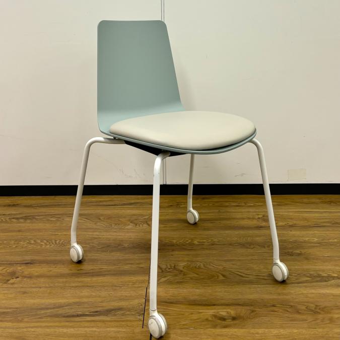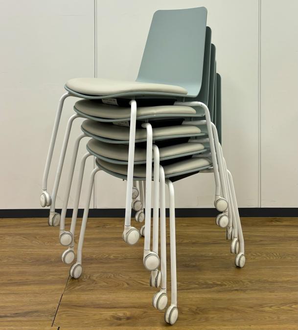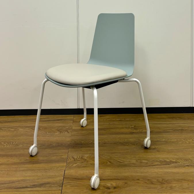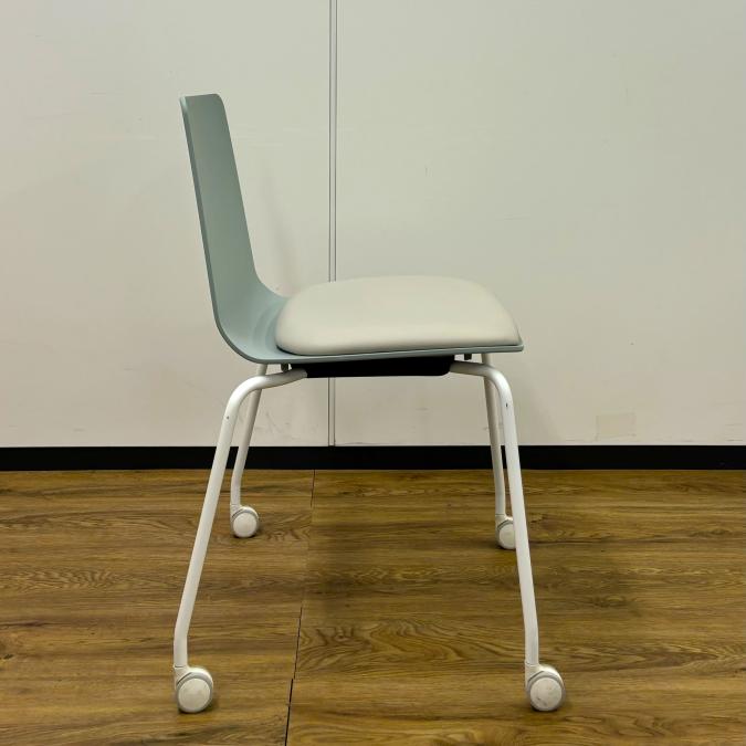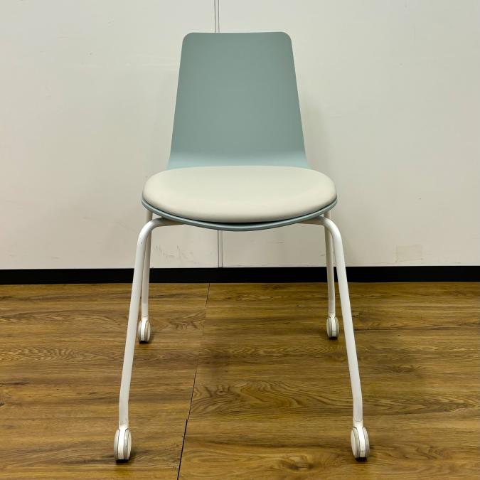 【在庫入替セール】【3脚のみ】【リフレッシュスペースにおすすめ!淡く爽やかな雰囲気を醸し出すカフェチェア!重ねて省スペース!】■コクヨ (KOKUYO) ミケット(Mycket) スタッキングチェア ミーティングチェア 4本脚 ■座パッ無し/キャスター無し ■ホワイトターコイズ (ライトブルー色)【T9】
