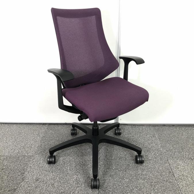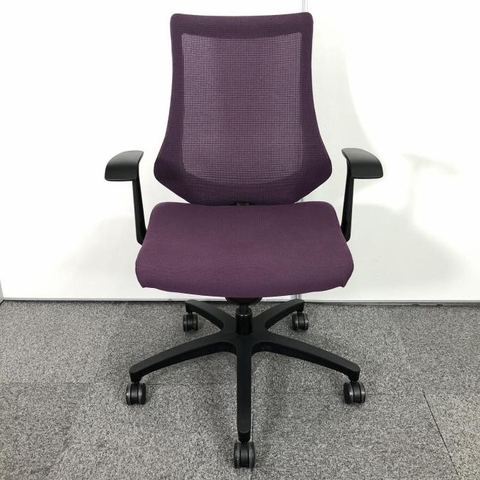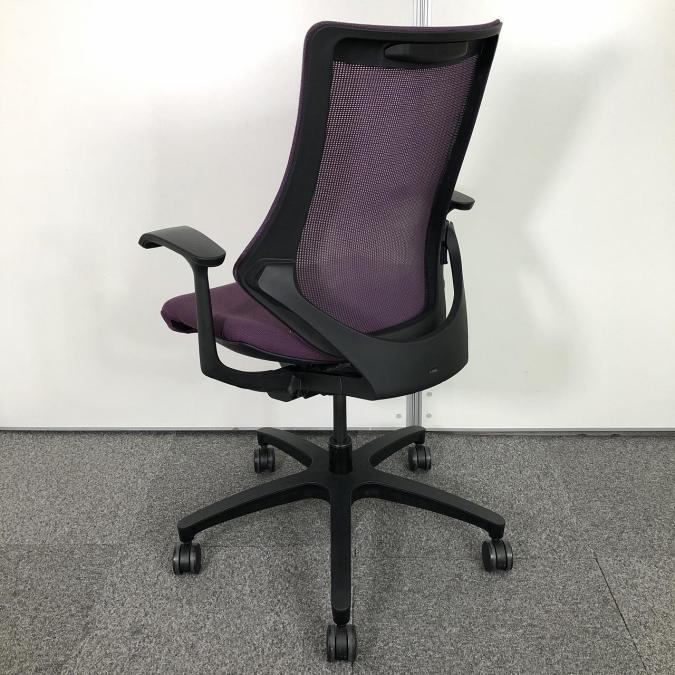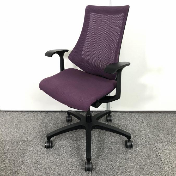【姿勢の変化にフレキシブルに対応!】■イトーキ エフチェア メッシュ ハイバック 肘あり ■プラムパープル ブラックフレーム 固定肘- 春日部・越谷店