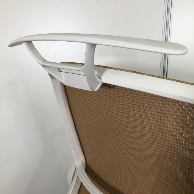 もちろん見た目だけでなく、オフィスでの使いやすさも考えられています。例えば、普通のチェアでは離着席時に背もたれを持つので、背もたれの上部が少しずつ汚れてきます。しかし、エルフィでは、背もたれのフレームに取っ手がついており、それを押し引きできるので、クッションやメッシュを汚すことなく綺麗な状態で長くお使いいただくことができます!