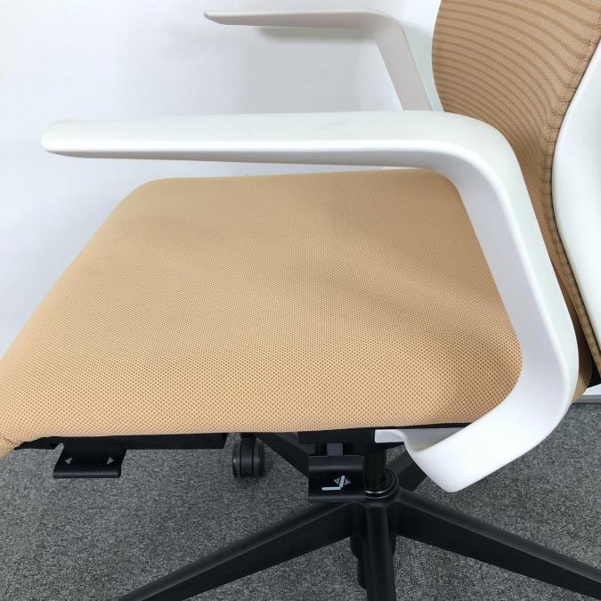 また、個人的にオススメなのは『フルアジャスタブル肘』というアーム部分が斜め前に伸びていくタイプの肘置きを搭載したモデルです。高さを上げれば上げるほどパッドが前方に迫り出していくので、デスクワークの際にちょうど肘を置きたい場所に肘置きがきます。これがとても快適なので、ぜひ一度お試しいただきたいです!*エルフィチェアの肘パーツはフルアジャスタブル肘の他に、固定肘、アジャスタブル肘などがあります。