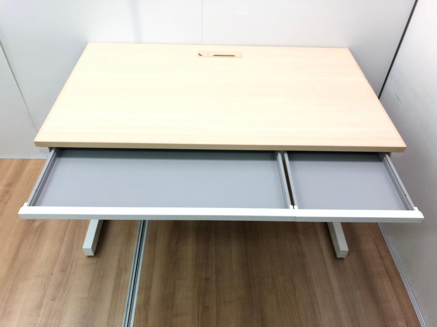 【在庫入替セール】【3台限定!】ウチダ製 スカエナシリーズ Kタイプ ナチュラル天板 W1200サイズ 平机 配線カバー 引出し付 おしゃれ