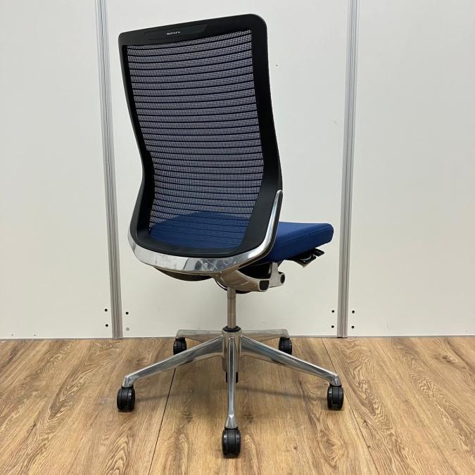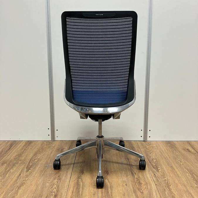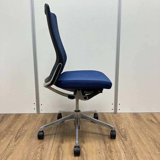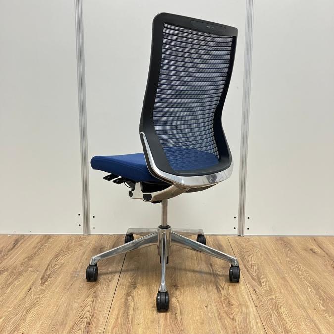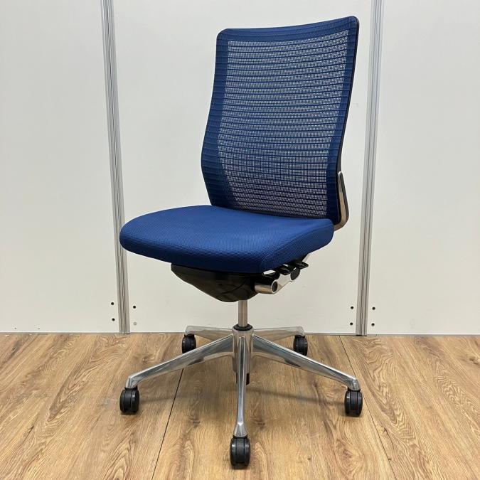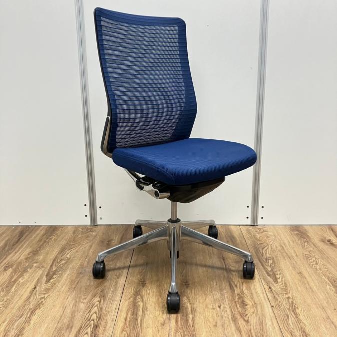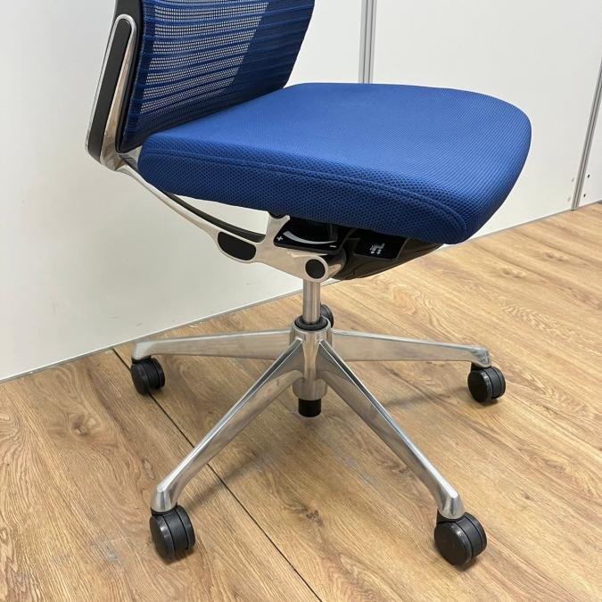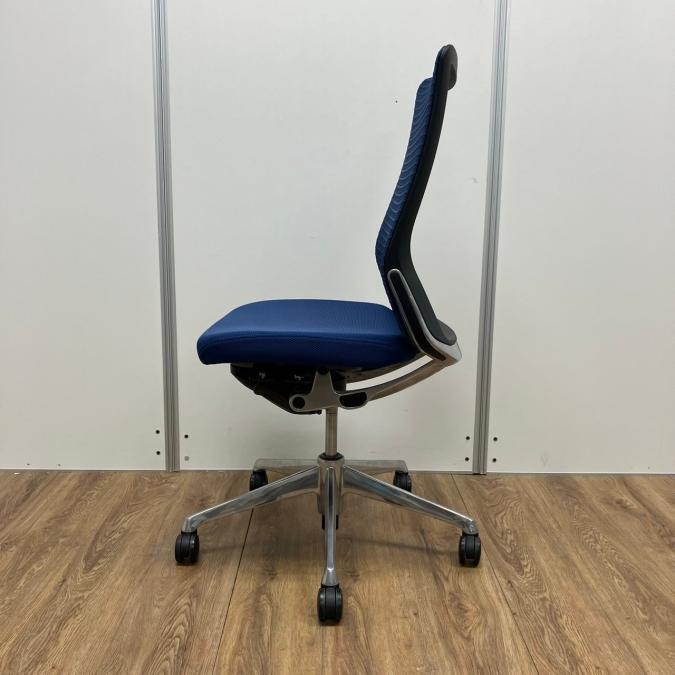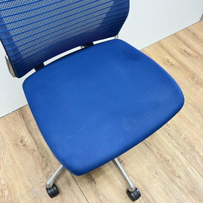 【商品入替のため、残り2脚限り】オカムラ製 コーラルシリーズ ブルーカラー 美しいデザインの快適メッシュ! 肘無しハイバックチェア!!- 京都東寺店