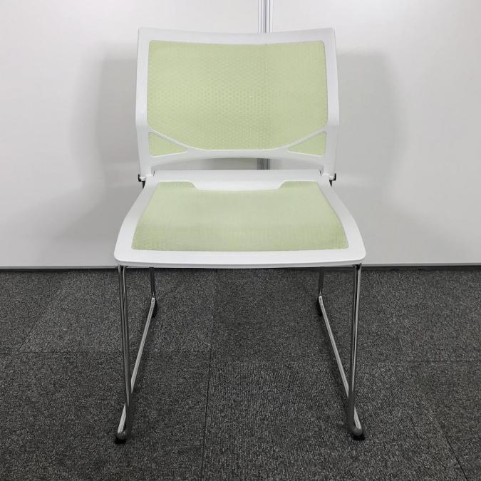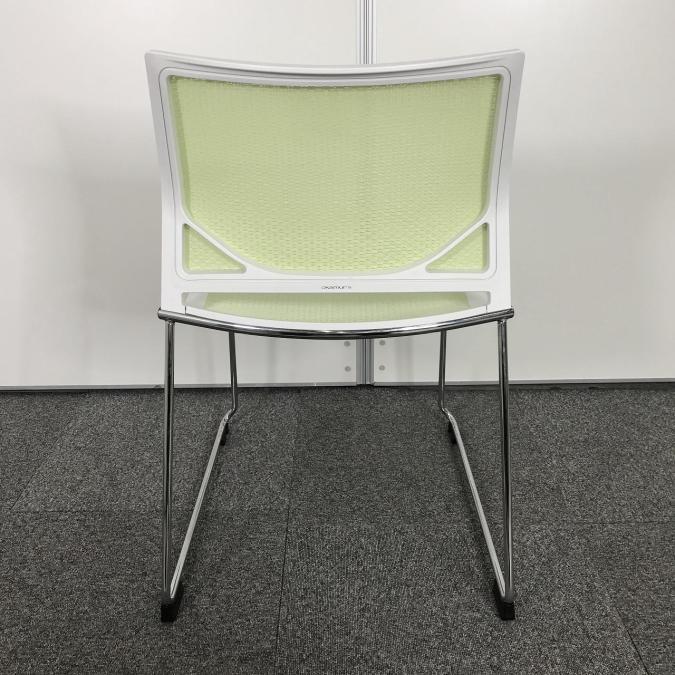 在庫入れ替えセール30%【定価約4万円】【重ねて省スペースに格納できます!】■オカムラ Zart(ツァルト)シリーズ スタッキングチェア ■キャスター無 ■ピスタチオグリーン ホワイトシェル 背座メッシュ- 池袋店