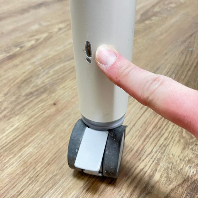 - 壊れている天板歪み、アジャスター無し、キャスター使用不可のようにそのテーブルの本来の効用を果たすための機能に不具合がある。