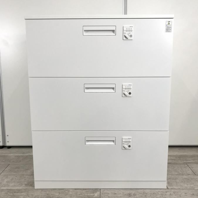 ★コクヨ製 エディア ホワイト W900xD450xH1100サイズ シリンダー錠 潔感のあるホワイト書庫! オフィスの定番収納キャビネット! 3段ラテラル書庫!!