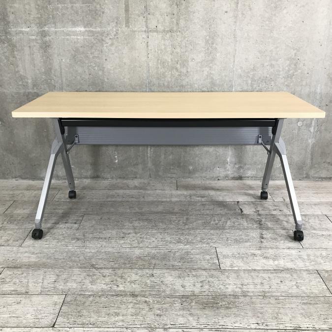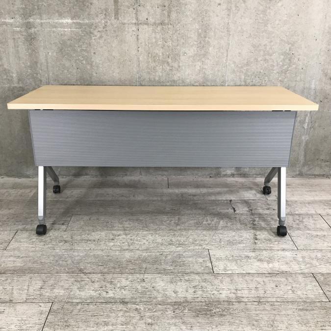 オカムラ製の定番スタックテーブル!天板跳ね上げ式でキャスター付きのため収納にも便利! ■オカムラ/フラプター/ナチュラル 横幅1500㎜奥行450㎜- 立川・八王子店