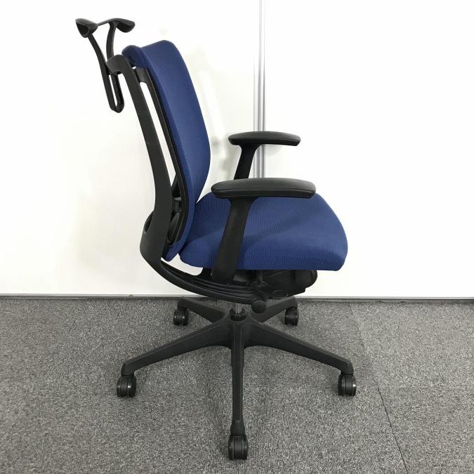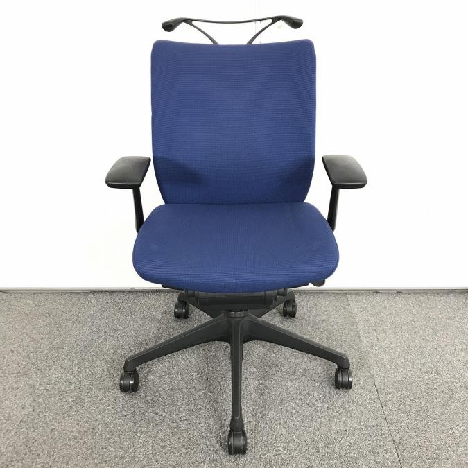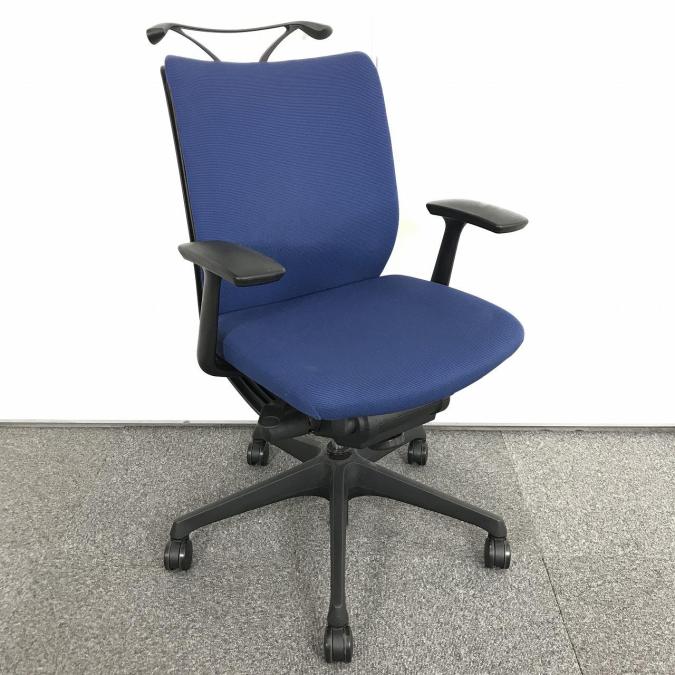 【在庫入替セール品!】高いデザイン性と快適なクッション性が人気のOAチェア【人間工学に基づいた心地よい座り心地!】 ■オカムラ/ヴィスコン/ミディアムブルー 可動肘付- 立川・八王子店