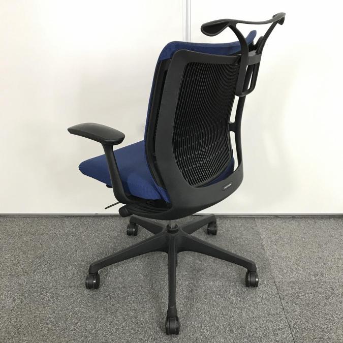 オカムラ ヴィスコンテ ローバックモデル アジャストアーム(可動肘)ブルー 背クッション スタンダードタイプ