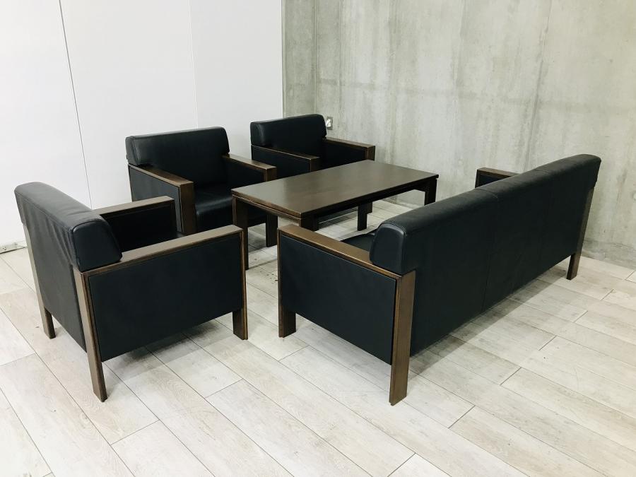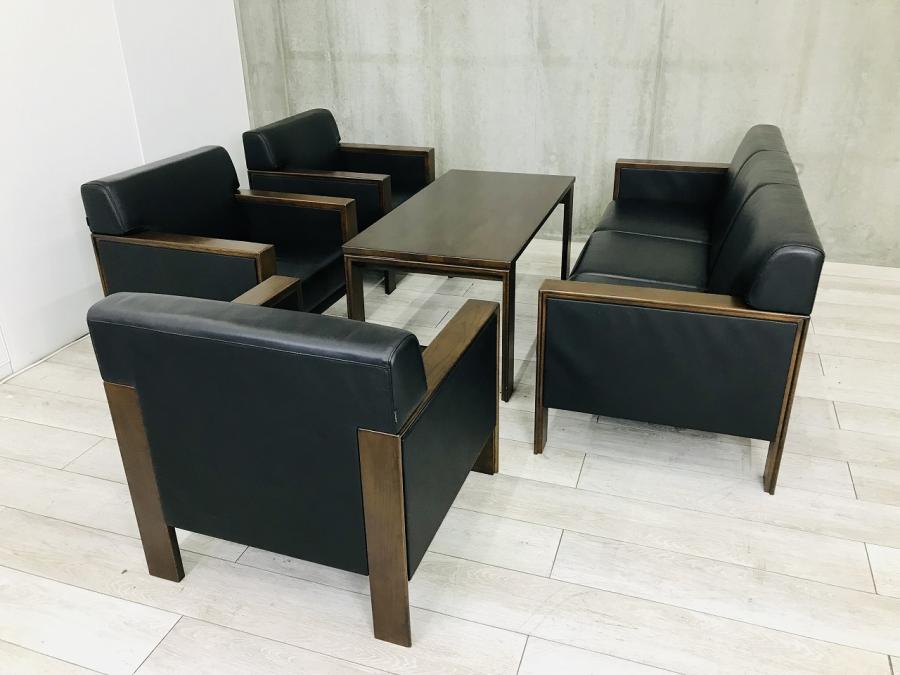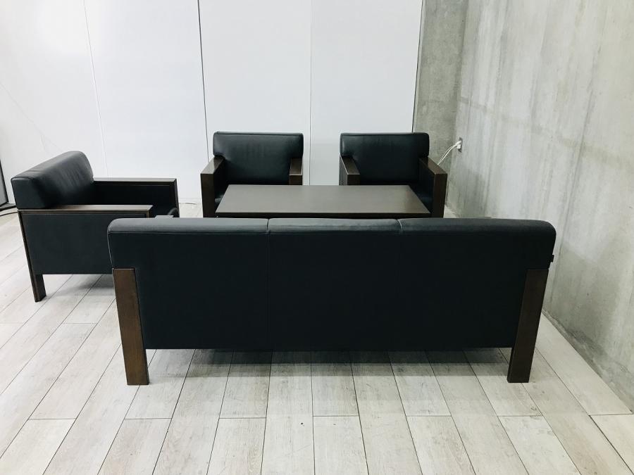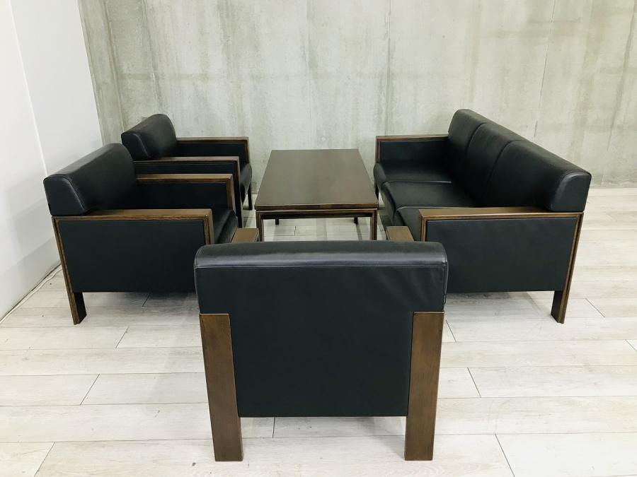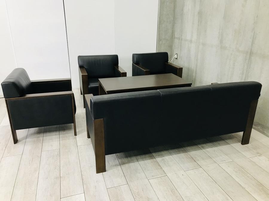 【1Pソファー3+3Pソファー+テーブルの応接セット】【大人気オカムラ製の応接セット一式が入荷!ミドルクラスの応接セット!】■オカムラ(okamura)製 応接セット一式 ■ブラック(肘木・脚・テーブルは木目ブラウン) 【ABW商材】【関東倉庫在庫品】【弊社使用欄:A00955200】- 全店共通商品