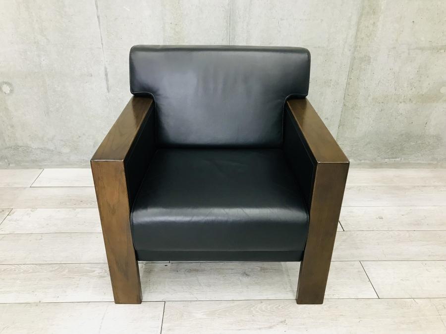 シックなブラックカラーで、肘と脚は木目ブラウンでオシャレ感もあります。